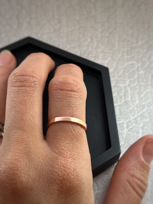 Solid 9ct Rose gold 2mm simple plain modern recycled gold flat band ring