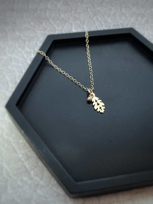 Solid 9ct gold mighty oak leaf & little acorn pendant, a handmade woodland inspired necklace