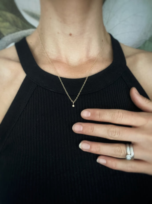 Solid 9ct gold tiny plain pebble pendant, recycled personalised stacking handmade necklace