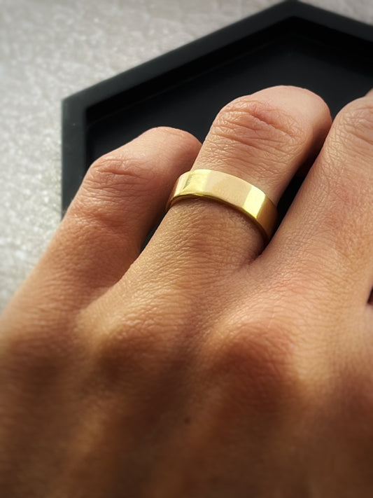 Solid 18ct yellow gold 5mm simple plain modern heavy recycled gold flat band ring