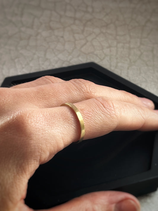 Solid 18ct yellow gold 2mm simple plain modern delicate recycled gold flat band ring