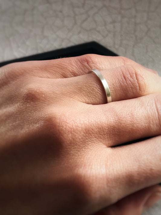 Solid 18ct White gold 2mm simple plain modern delicate recycled gold flat band ring