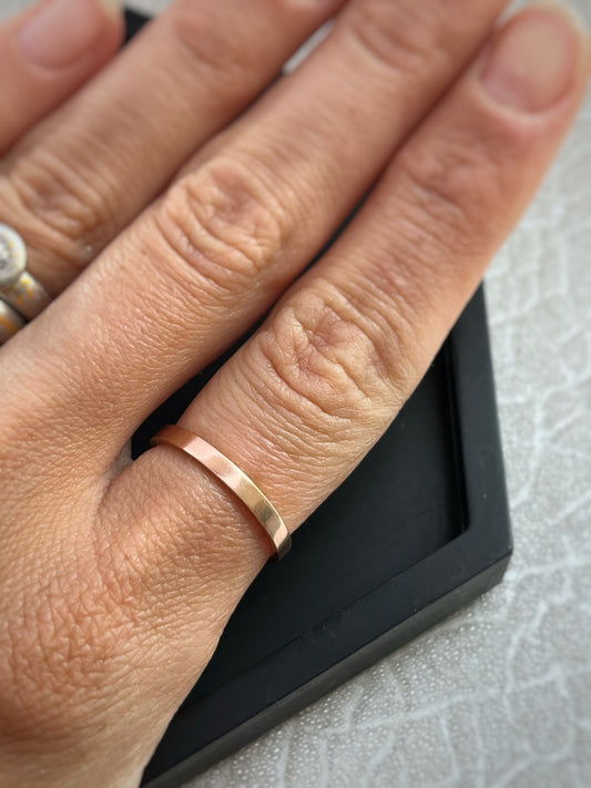 Solid 18ct Rose gold 2mm simple plain modern delicate recycled gold flat band ring