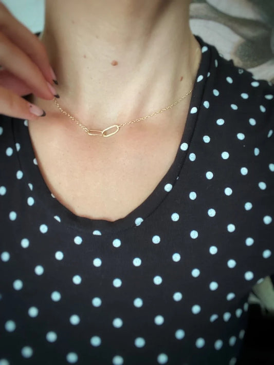 Solid 9ct gold a handmade hammered textured interlocking oval necklace