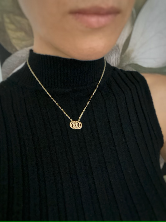 Solid 9ct gold triangle handmade hammered textured interlocking circle necklace
