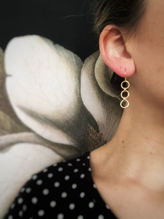 Solid 9ct yellow gold circle drop earrings- 1.5mm wide