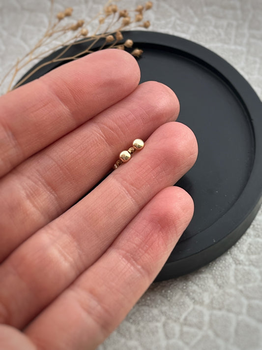 Teeny tiny, 9ct yellow gold round beach pebble stud earrings- 3mm