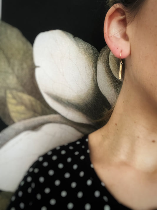 Solid 9ct gold hammered textured rectangle dangly earrings