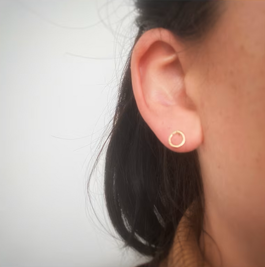 Tiny hammered 9ct yellow gold studs- 7mm