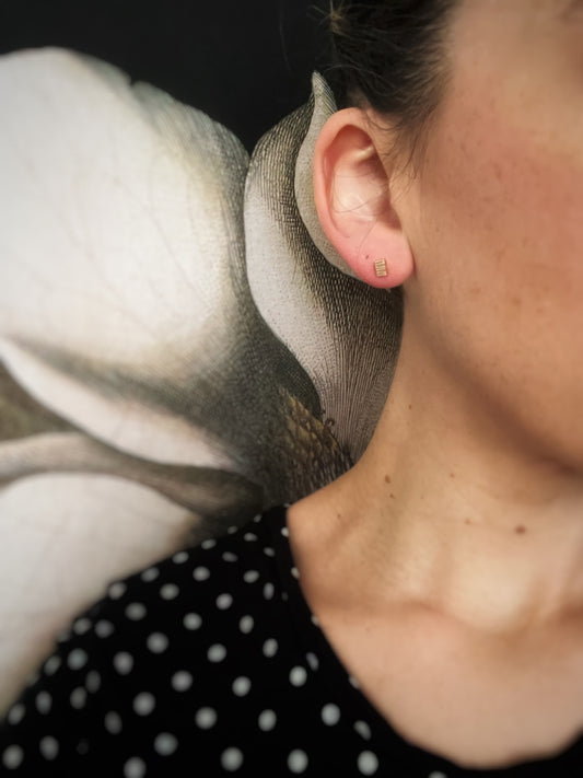 Solid 9ct gold chunky cube rectangle hammered texture handmade square bar stud earrings