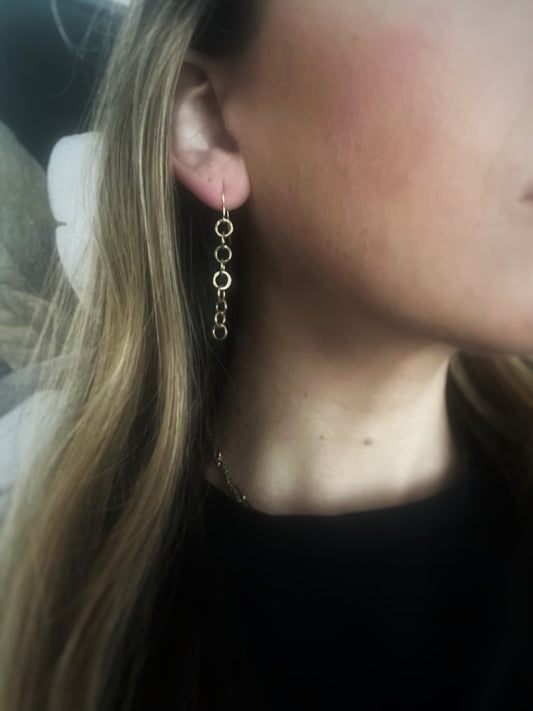 Simple 7 hoop solid 9ct yellow gold bark texture dangly earrings- 6mm