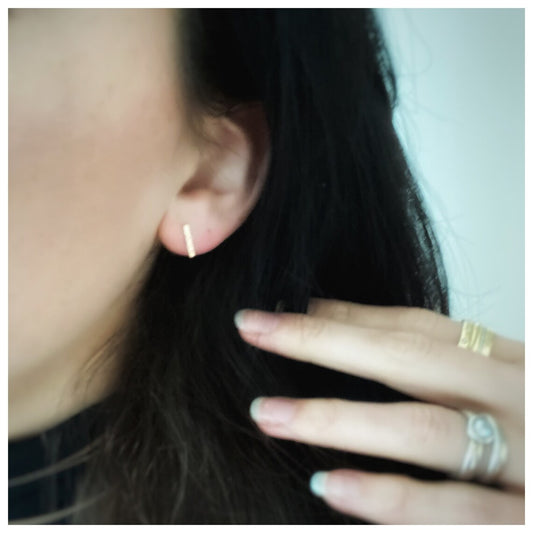 Solid 9ct gold hammered texture handmade square bar stud earrings