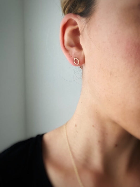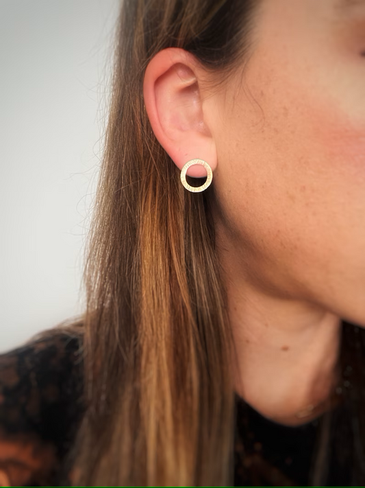 Solid 9ct yellow gold large handmade textured simple stud earrings