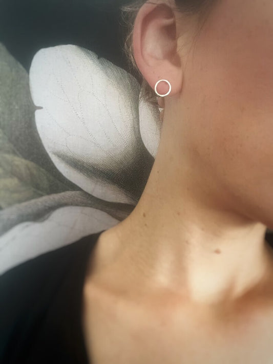 Solid white 9ct gold circle studs, handmade hammered texture-10mm