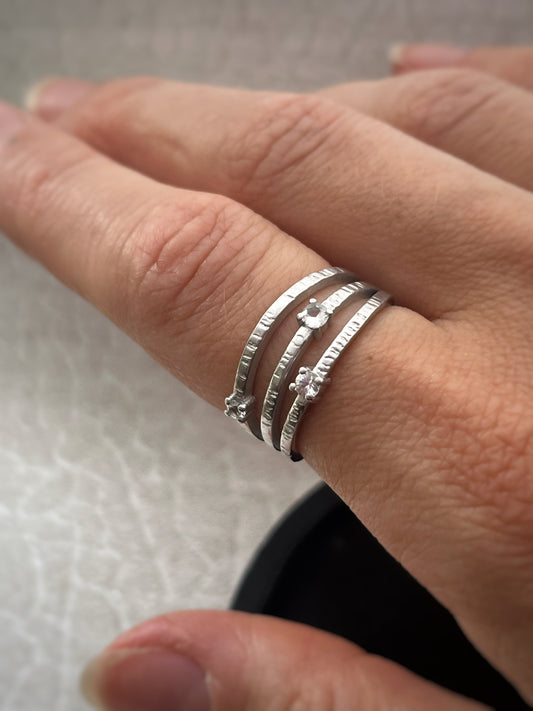Solid White 9ct Recycled Gold & Natural Diamond Triple Band Ring Handmade, Bark Textured, Nature-Inspired Statement Ring