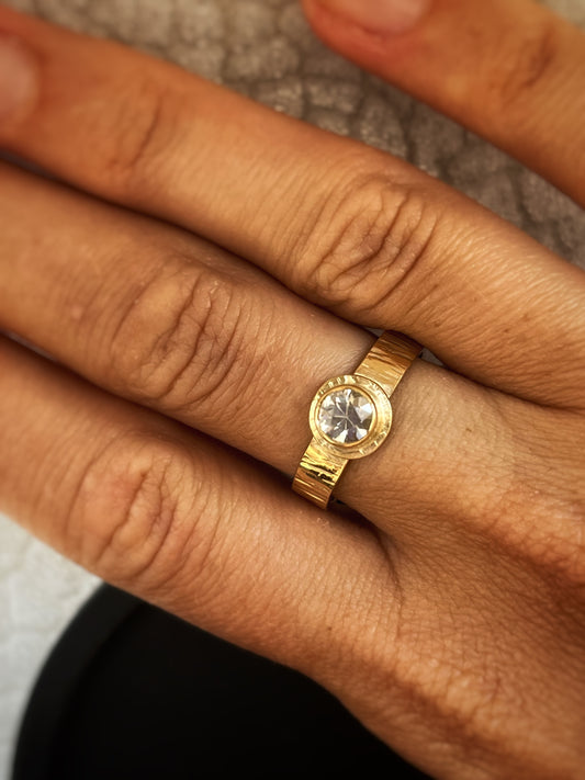 Solid gold 9ct yellow gold 0.5 carat 4mm diamond hammered unique engagement ring