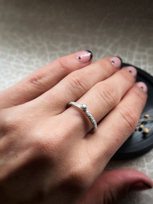 Solid white gold and diamond handmade dimple sand texture unique engagement ring