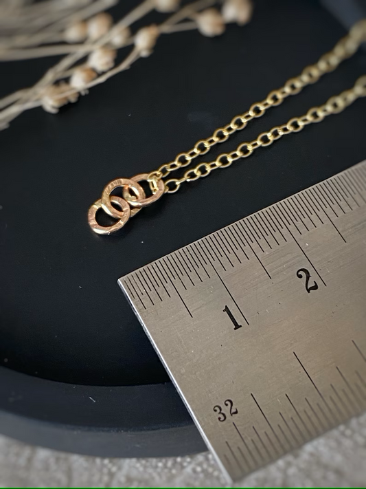 Solid 9ct gold tiny hammered interlocking pendant, handmade textured 3 round circle loops