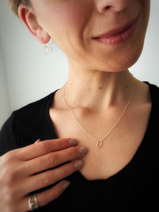 Solid 9ct gold leaf pendant, a handmade hammered and textured necklace