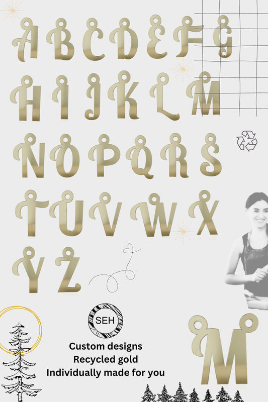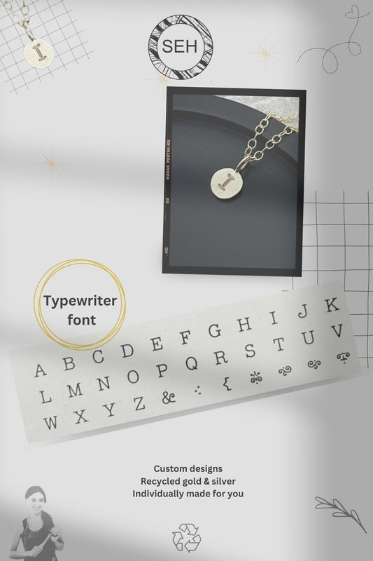 Solid 9ct gold wobbly disc typewriter font letter pendant, recycled personalised initial handmade necklace