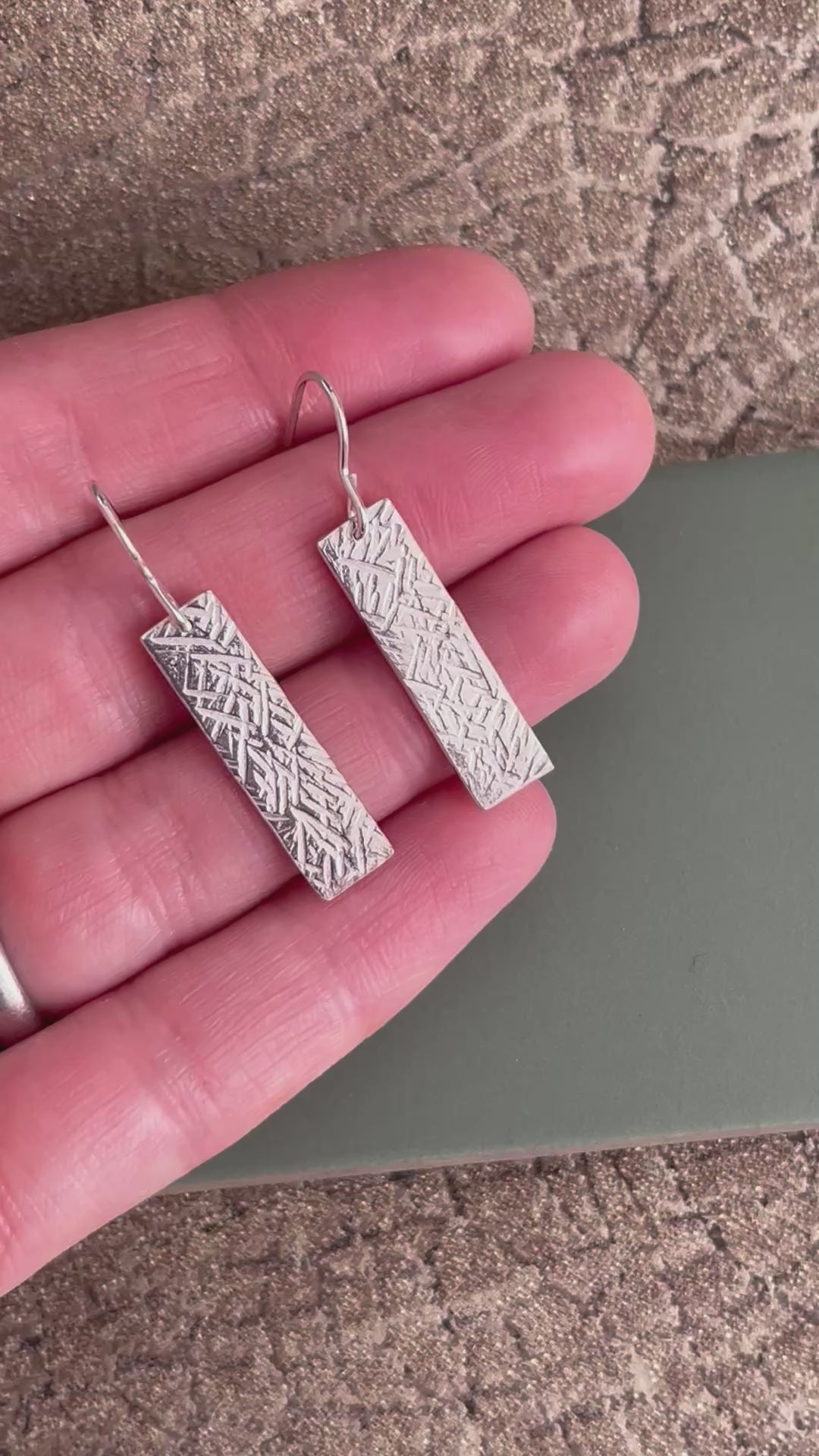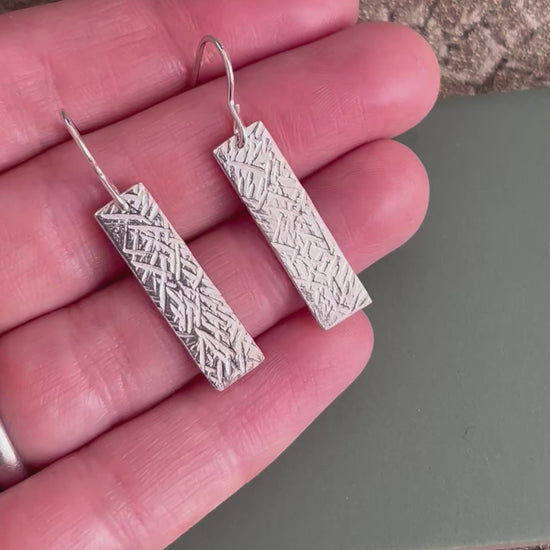 Rectangle hammered textured sterling silver 25mm x 7mm drop earrings