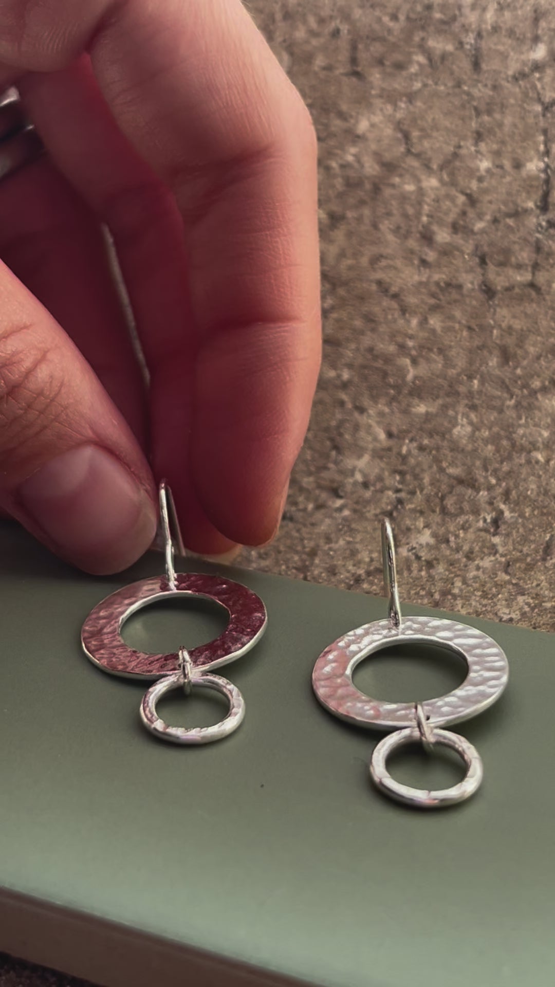 Hammered 20mm hoop disc & 10mm hoop sterling silver drop earrings