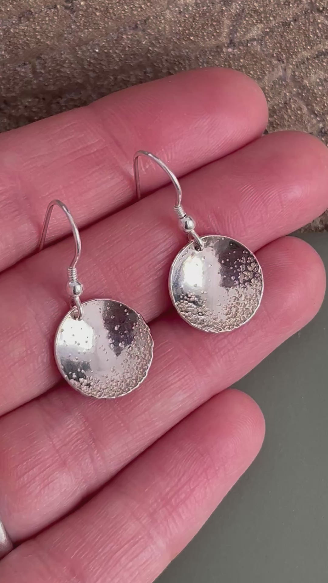 Domed dimpled sand coast inspired sterling silver 14mm drop earrings