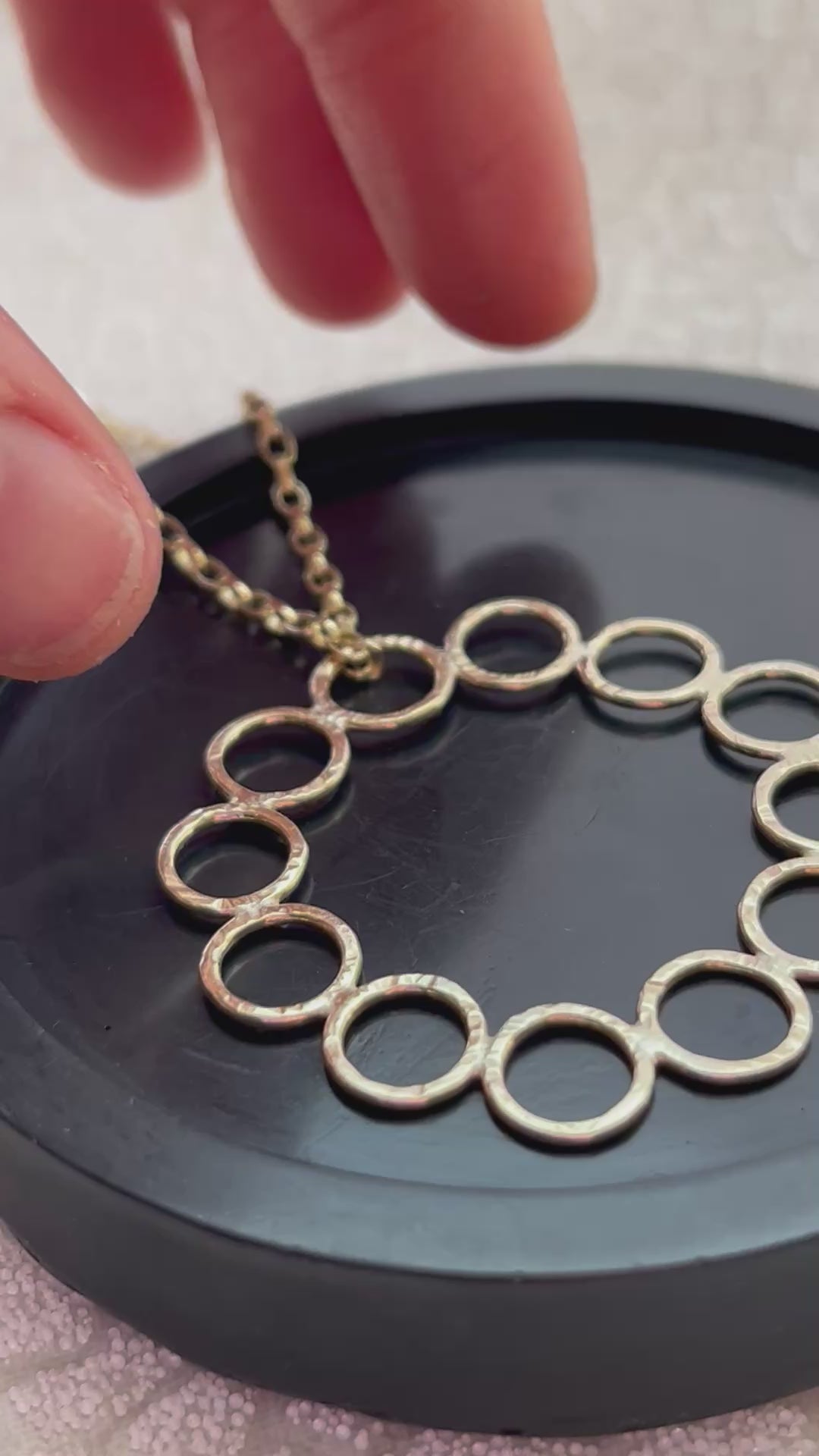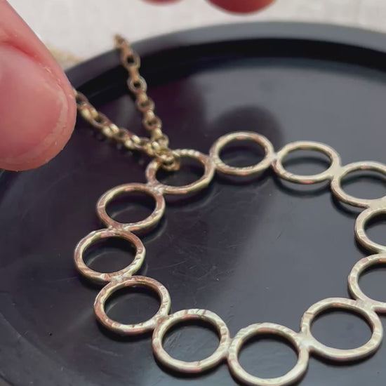 Solid gold interlocking circle necklace, a handmade hammered textured 9ct solid gold hoop, round modern gold chain necklace.