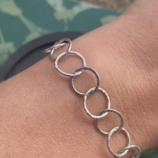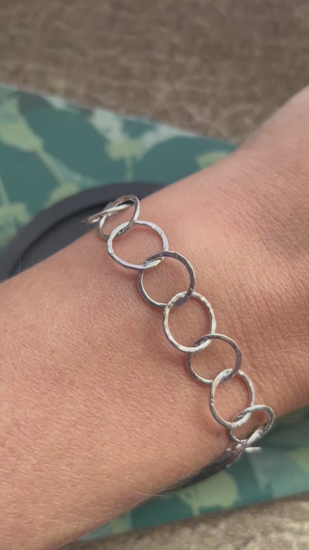 Solid 9ct white gold hammered hoop bracelet 7.5 inches