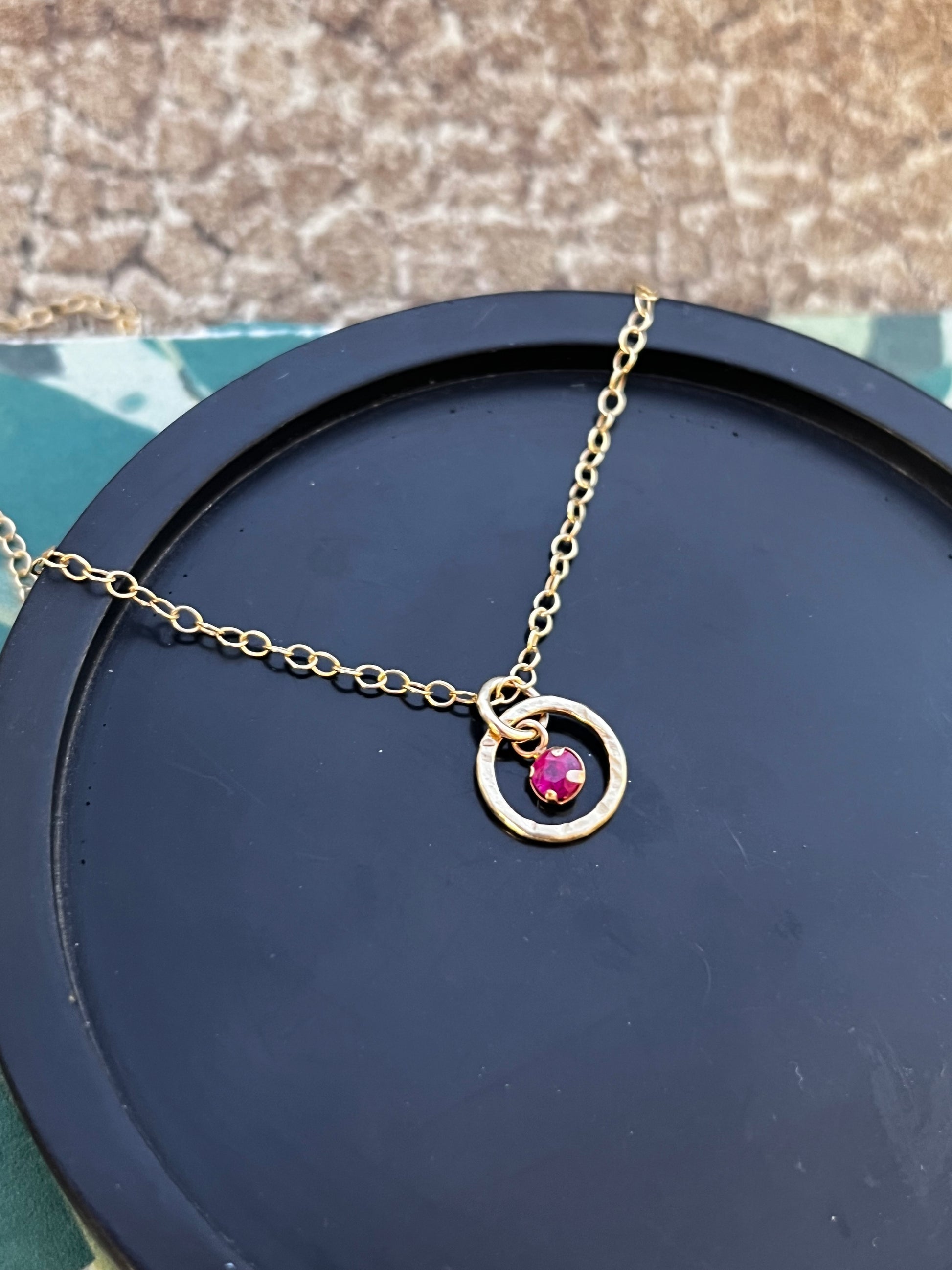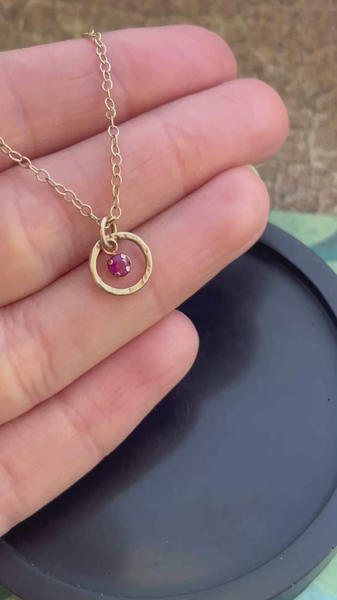 Solid 9ct yellow gold 3mm Ruby hoop pendant necklace 18 inches
