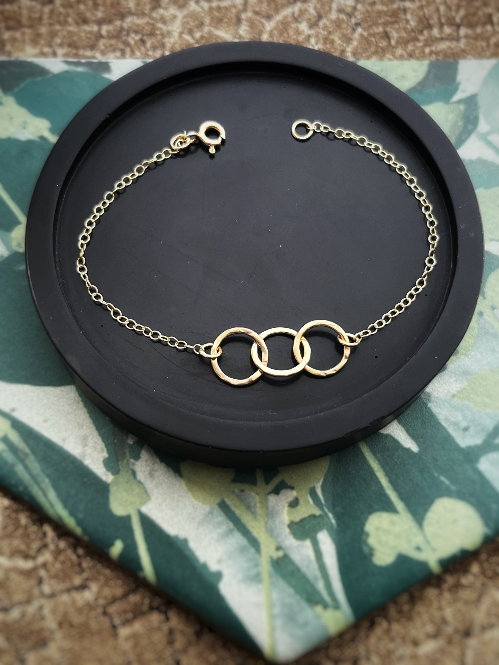 Solid 9ct yellow gold 3 hammered hoop bracelet 6.5 inches