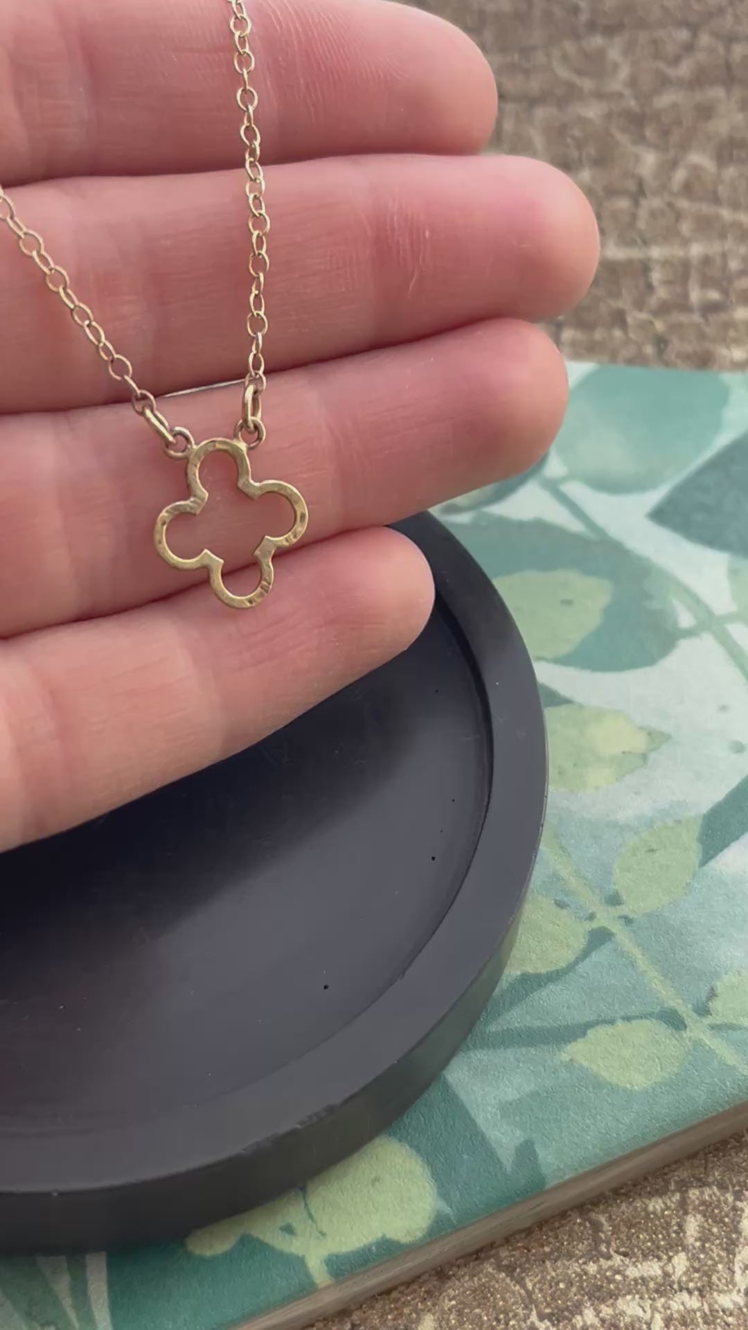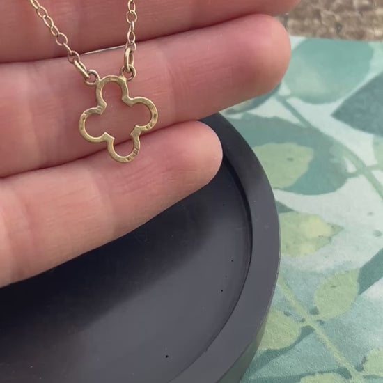Solid 9ct yellow gold hammered clover flower necklace 18 inches