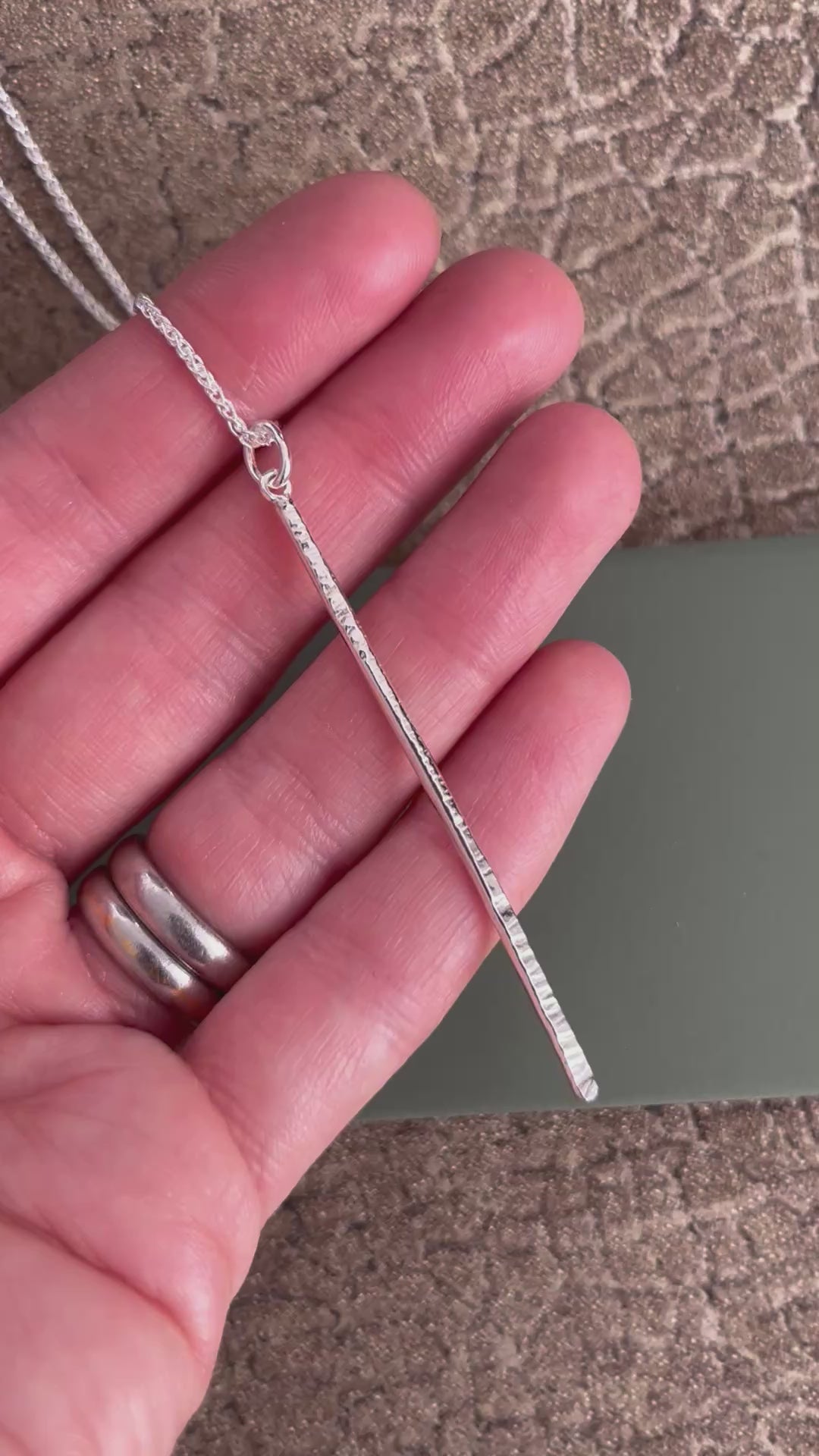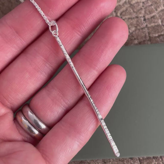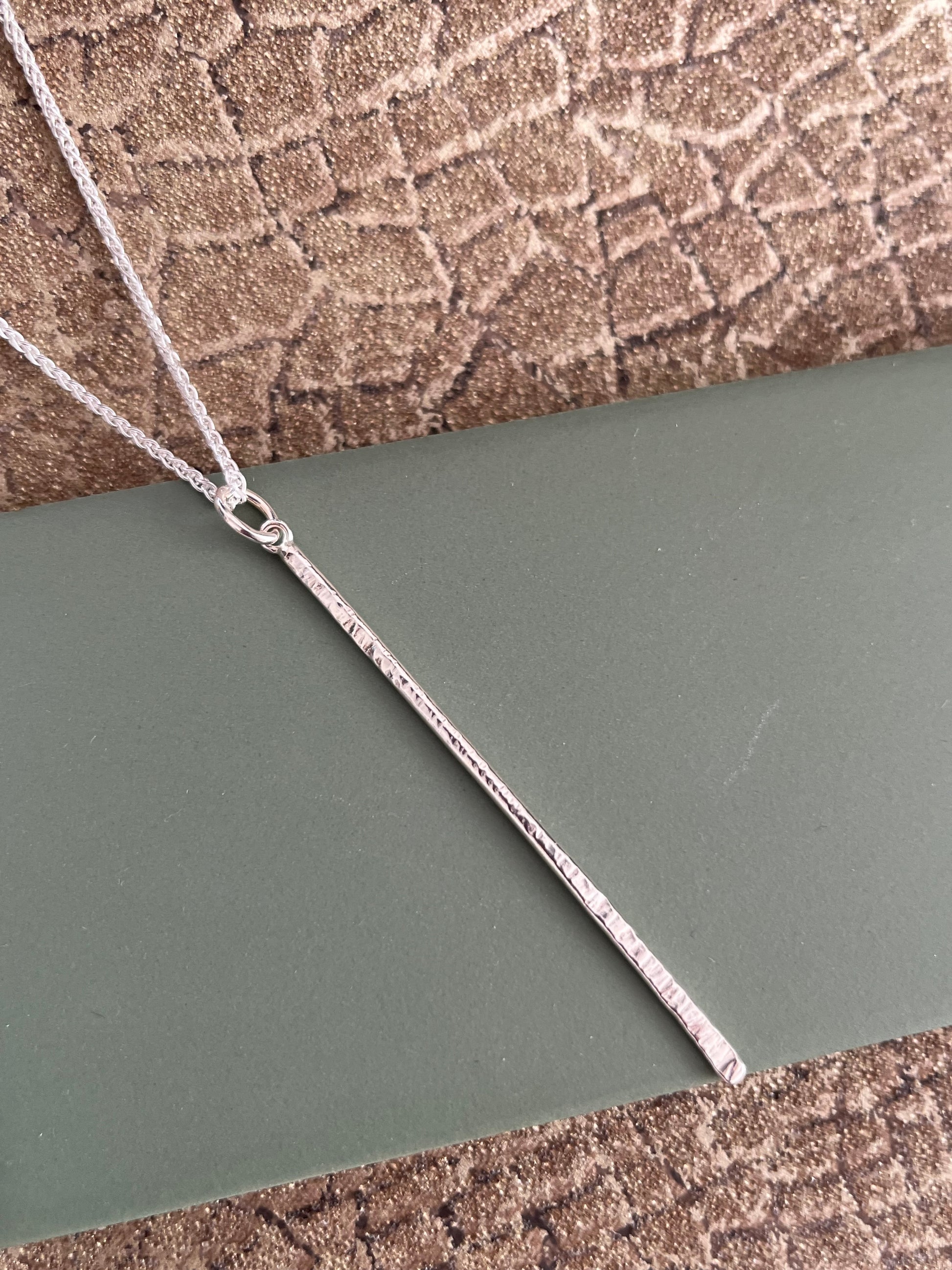 Sterling silver hammered bar pendant 60mm