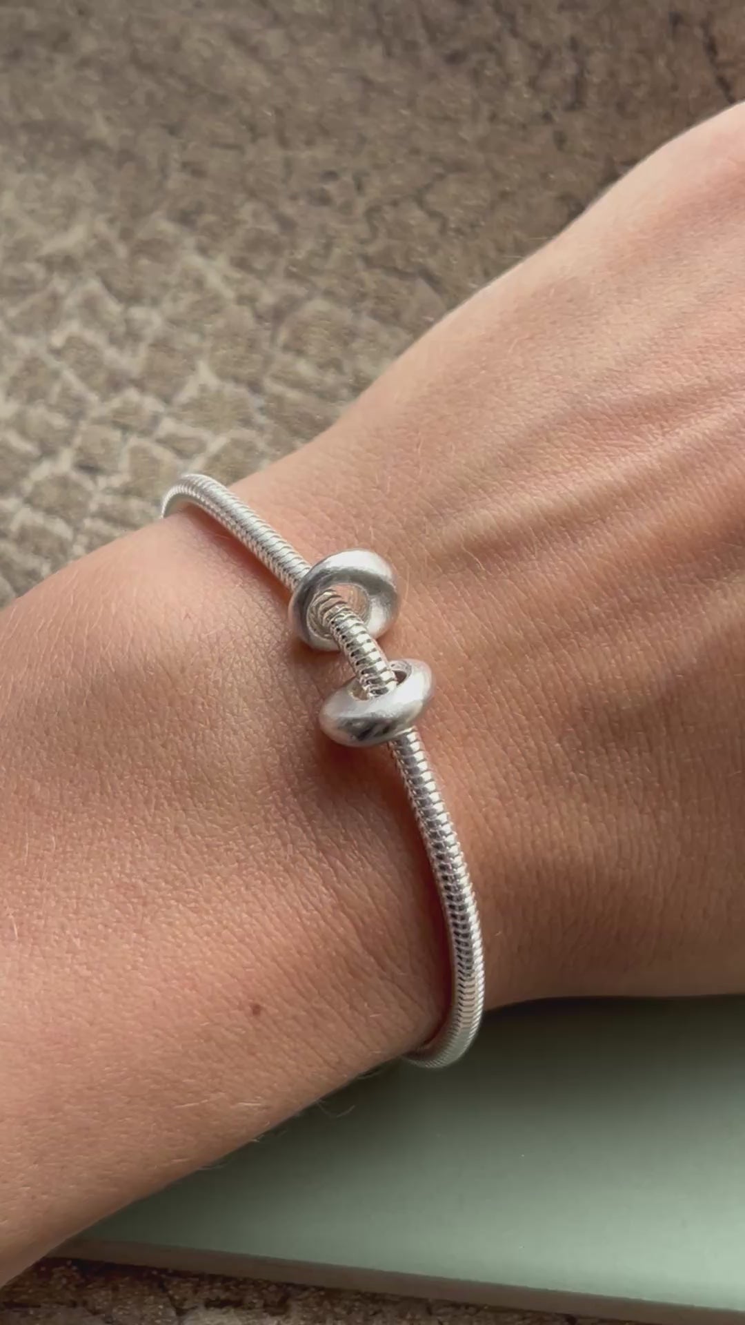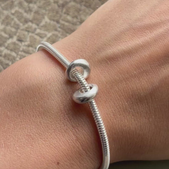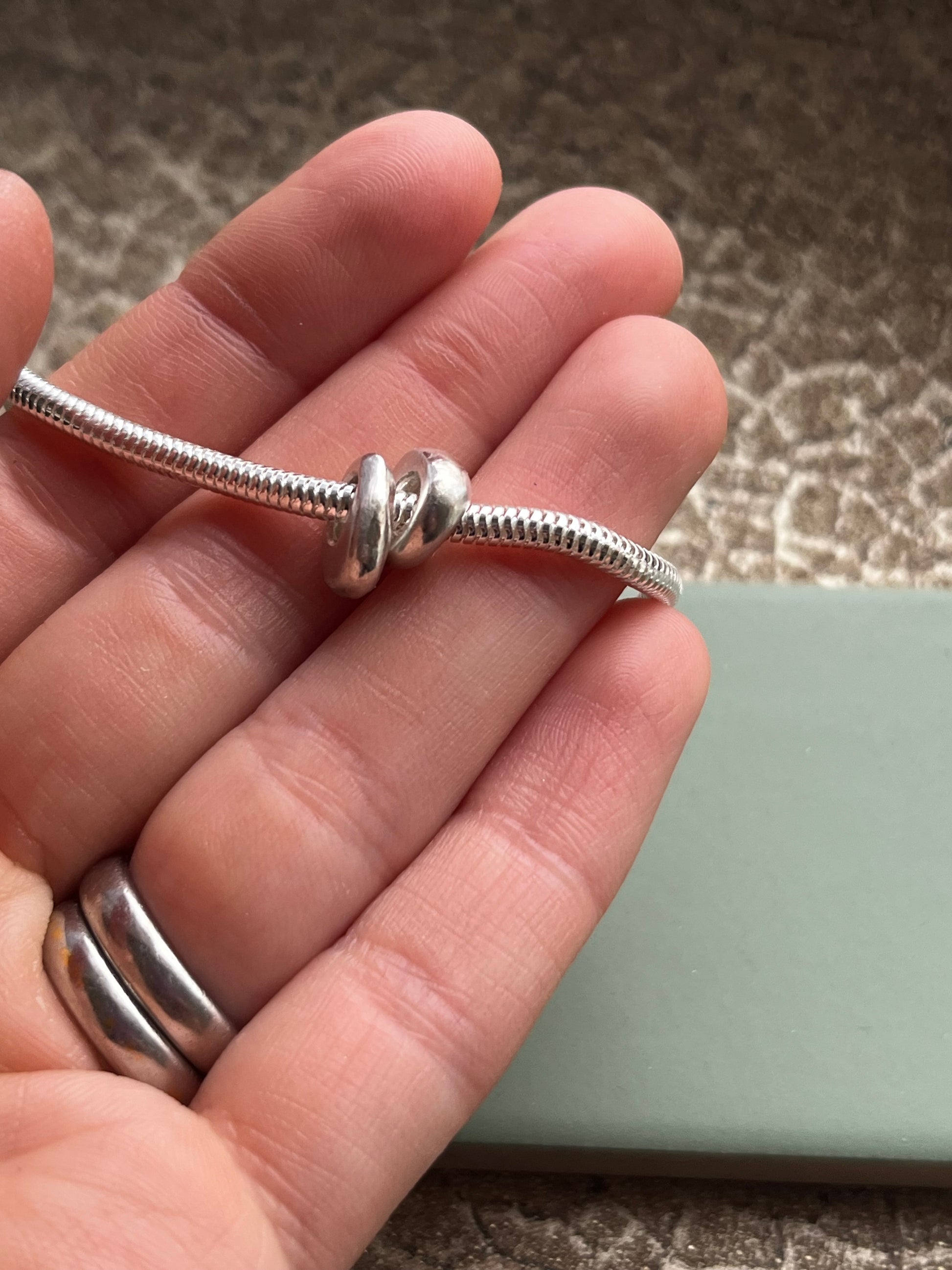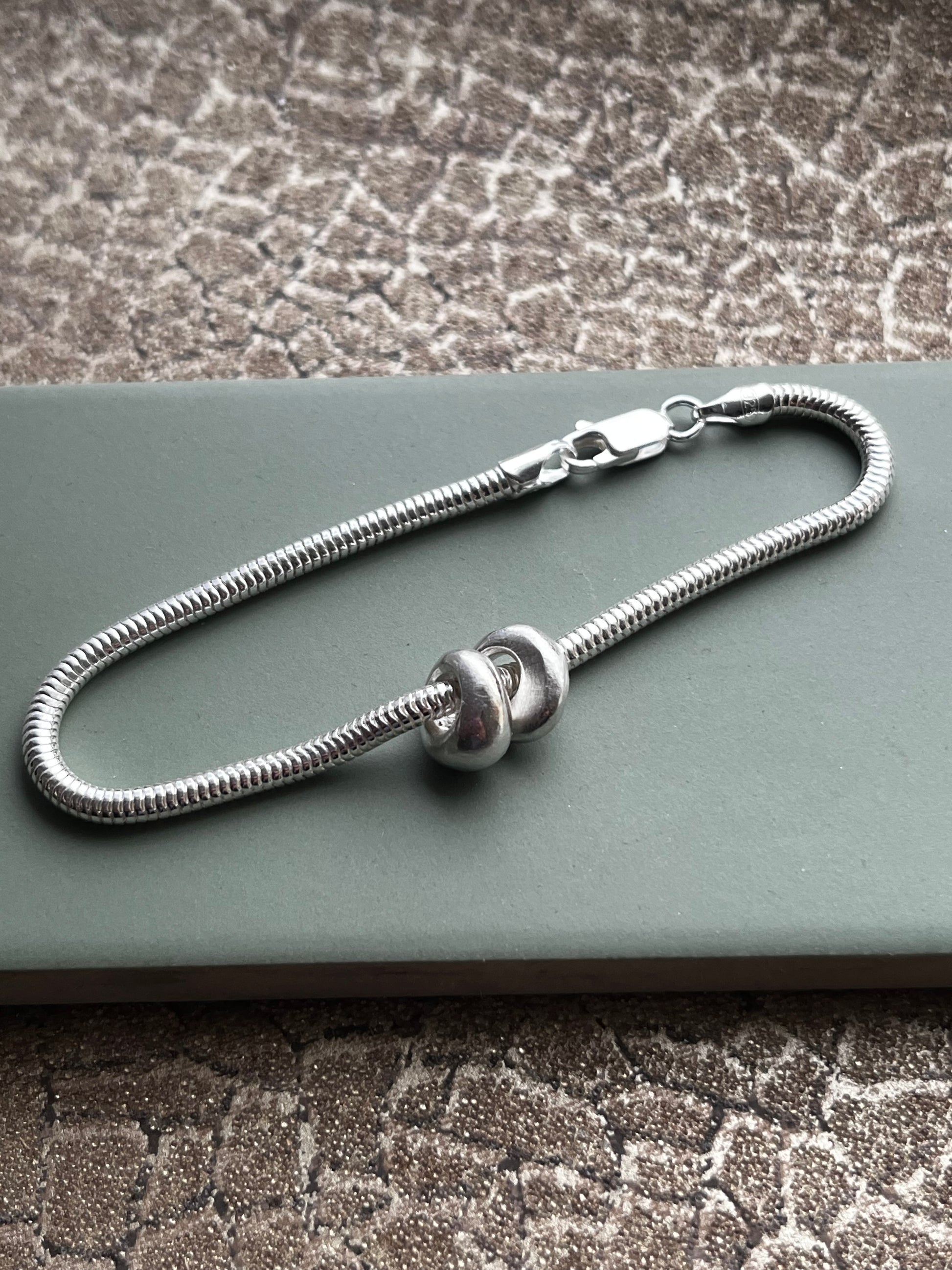 Sterling silver snake chain bracelet & 2 pebbles 7.5 inches