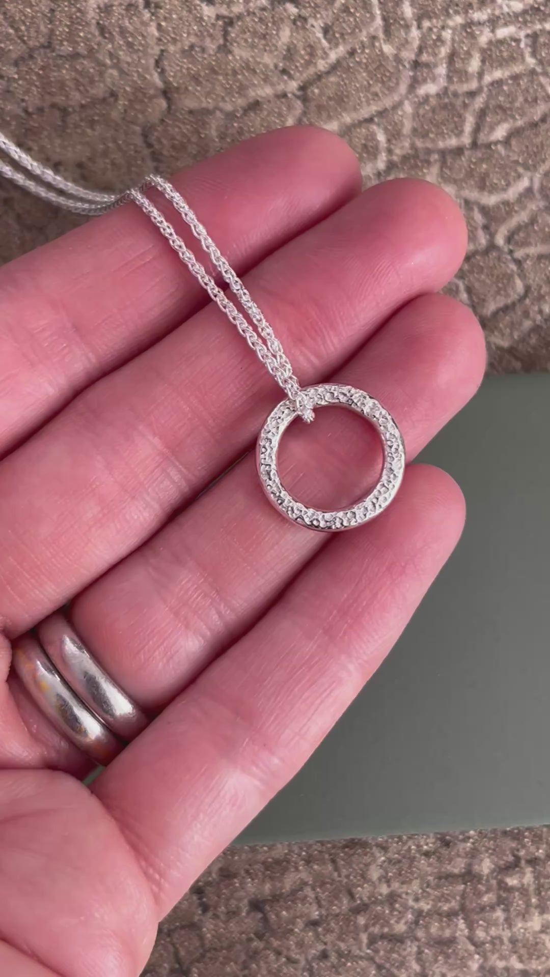 Sterling silver chunky dimpled hoop pendant 16mm