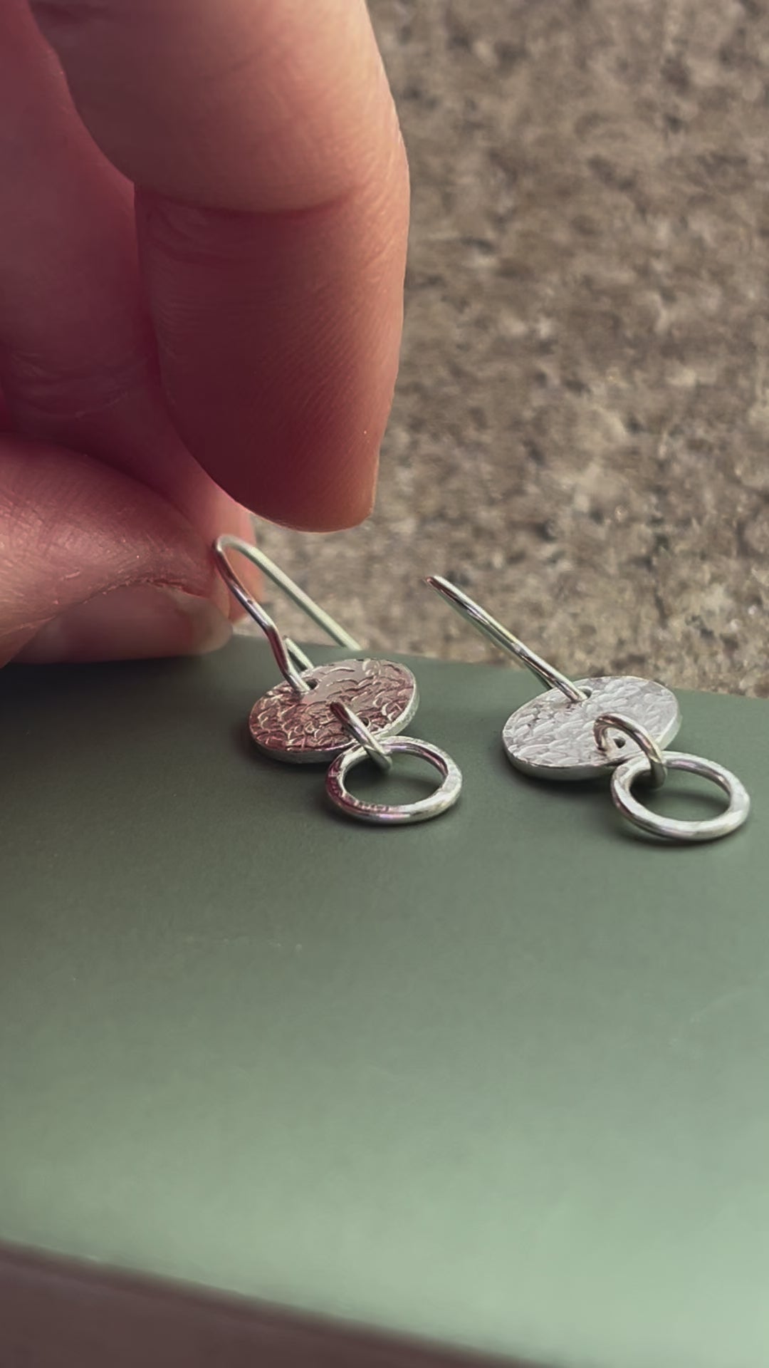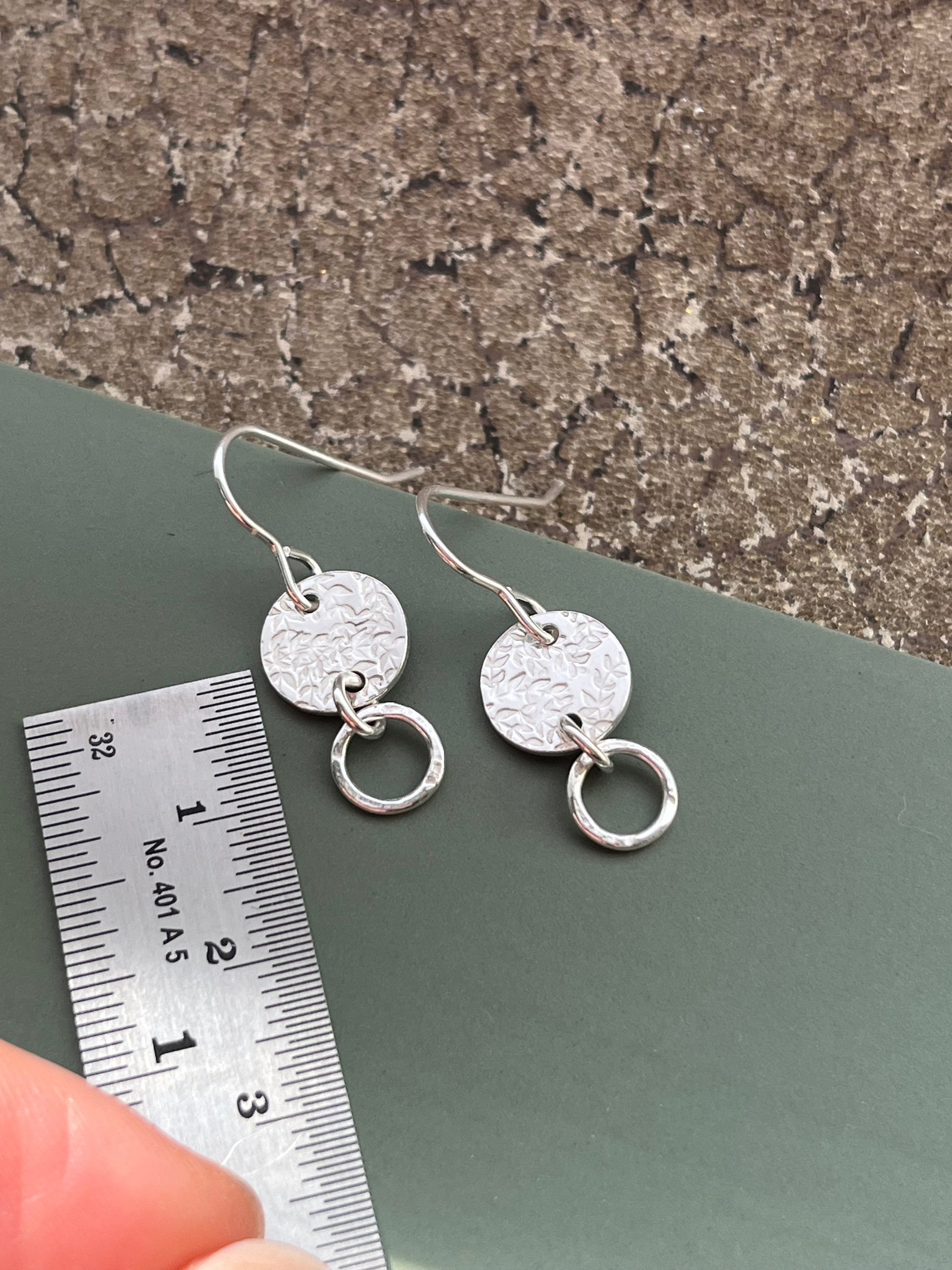 Leaf 10mm disc & 7mm hoop sterling silver drop earrings