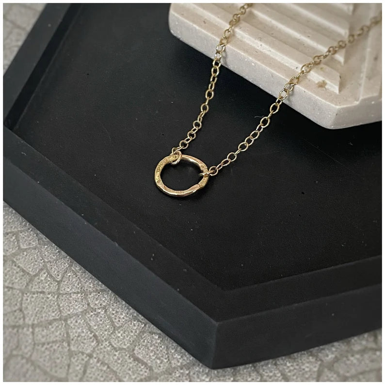 Solid 9ct gold, handmade hammered and textured circle pendant necklace
