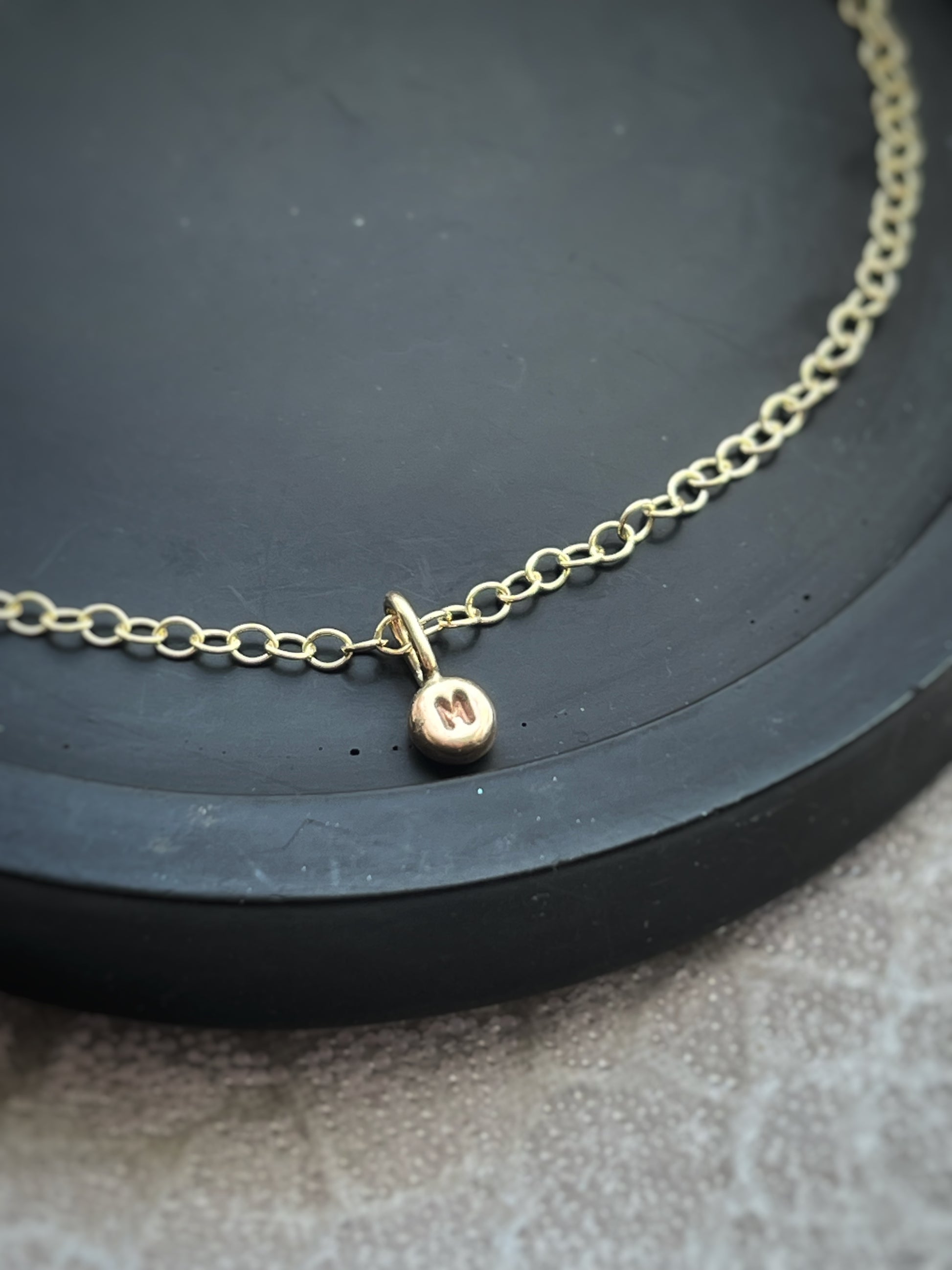 These are teeny tiny approximately 3mm solid gold personalised letter number (or initial) pebbles individually made by me from solid 9ct yellow gold. Every pebble will look differently from each other as although I weigh out the amount of gold I melt and forge each gold pebble individually by hand making them truly unique.
