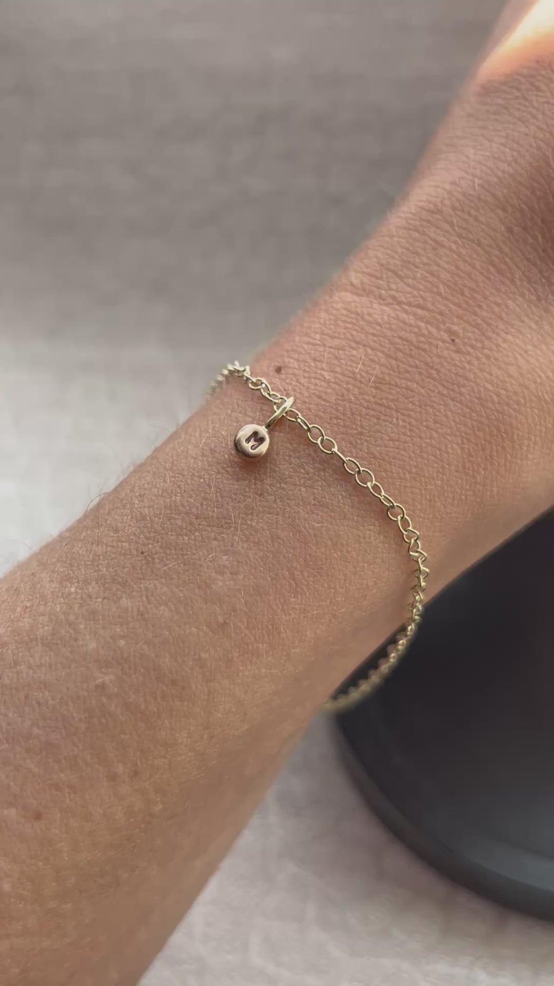Solid 9ct gold tiny letter pebble bracelet, recycled personalised initial stacking handmade