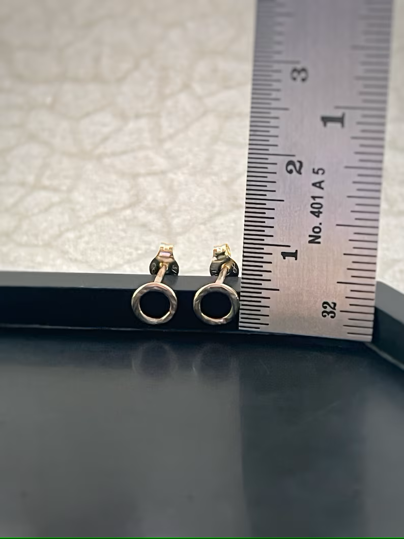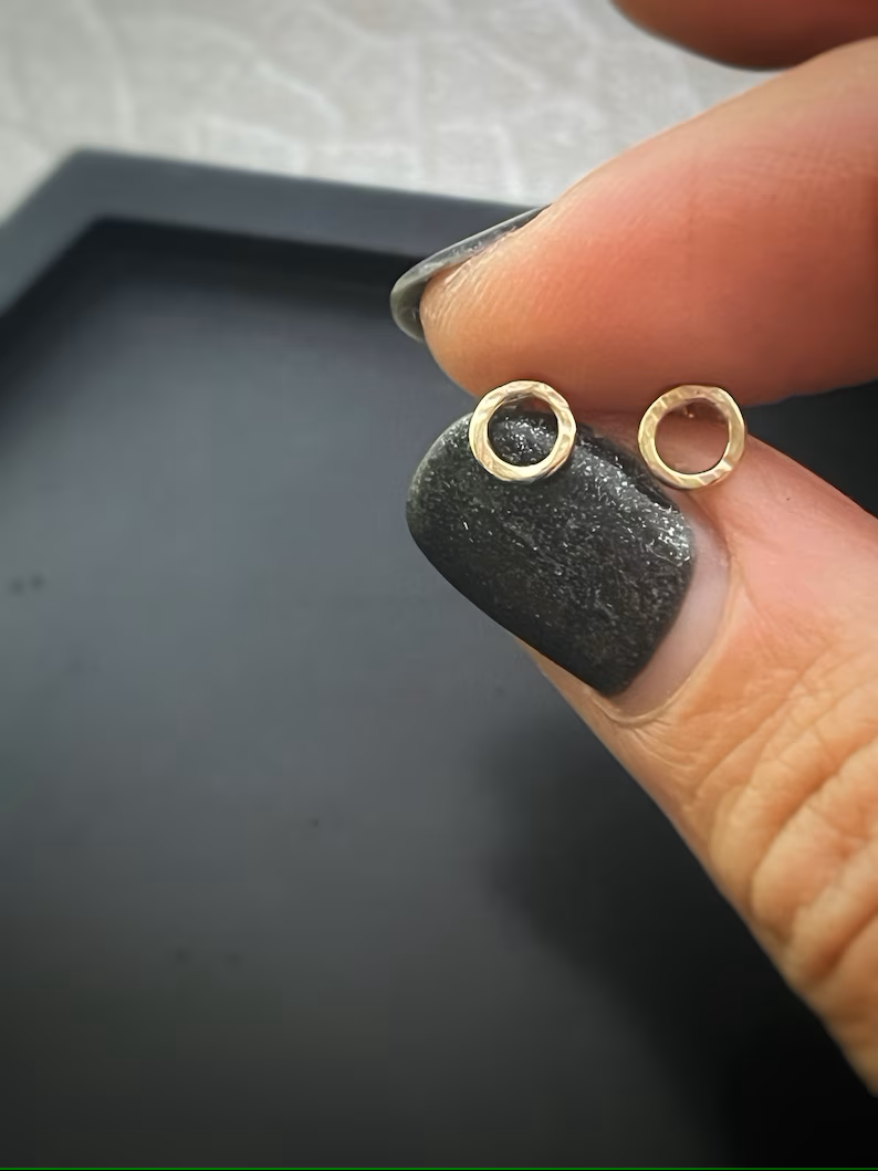 These circle studs are teeny tiny! Tiny solid gold hammered circle earrings, small 9ct yellow gold round hoop bark textured studs, Simple geometric gold earrings
